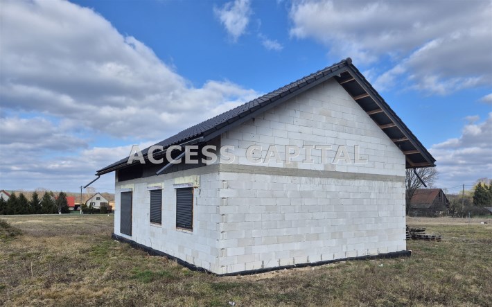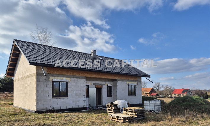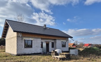 Dom znajduje się w bezpośrednim sąsiedztwie terenów zielonych . To wyjątkowa lokalizacja dająca szansę zamieszkania w okolicznościach natury, jednocześnie zapewniająca dobrą komunikację miejską z miastem Lubin oddalonym o 20km. Pozostałe odległości : Legnica 25km, Chojnów 14km. Dom o powierzchni zabudowy 132,2 m20 i powierzchni użytkowej 100,20 m2 składa się z : - salon z aneksem kuchennym , - 3 x sypialnia - garderoba - łazienka z wc - wiatrołap - pomieszczenie gospodarcze - hol Układ konstrukcyjny stanowią: ławy fundamentowe żelbetowe, ściany wykonane z betonu komórkowego , komin systemowy, dach dwuspadowy konstrukcji drewnianej, pokryty dachówką ceramiczną Creaton, tynki gipsowo-cementowe. Media: prąd, woda, gaz, kanalizacja w drodze.
