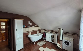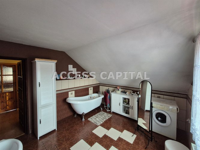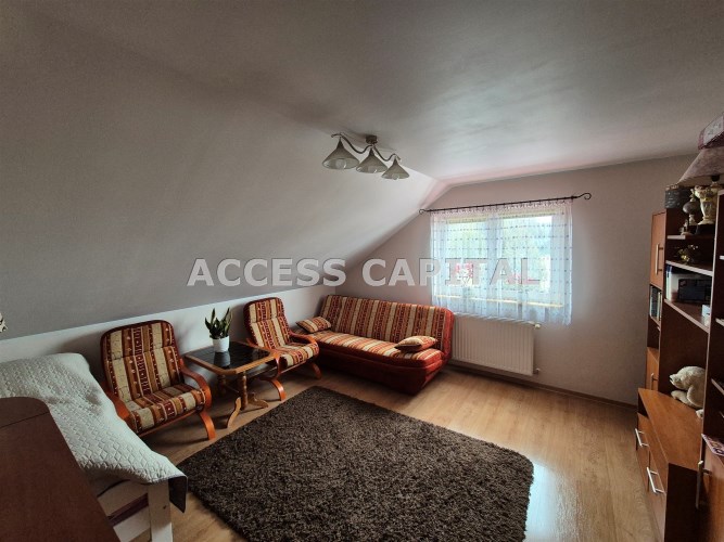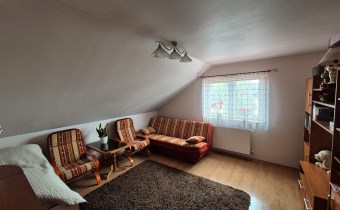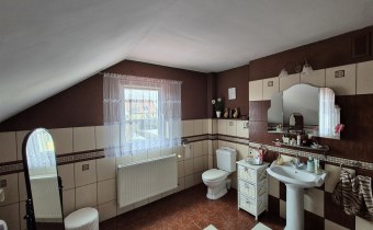 Dom oddany do użytkowania w 2005r i składa się z pięciu pokoi , jasnej dużej kuchni, dwóch łazienek z wc, wiatrołapu, garderoby , strychu, kotłowni oraz tarasu. W bryle budynku znajduje się również duży garaż.