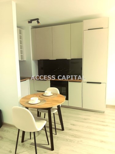 -salonu z aneksem kuchennym z wyjściem na słoneczny balkon,